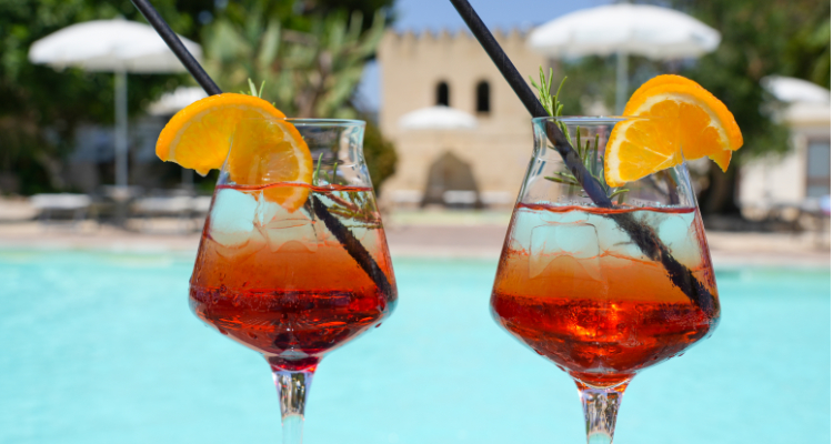2 ampie piscine moderne, di cui una attrezzata con vasca idromassaggio,attrezzate con lettini, ombrelloni e gazebi adiacenti alla piscina, dove gustare ottimi aperativi e piatti freddi.